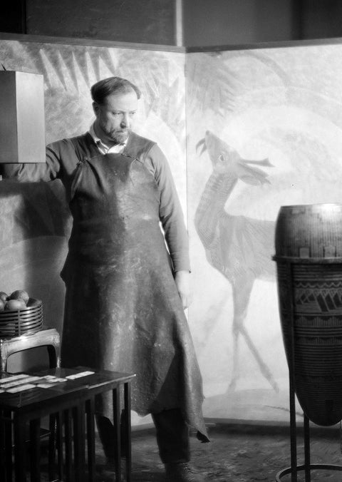 Jean Dunand was one of the great orchestrators of modern material poetry, a figure who stood at the crossroads of art, craft, and technology during the first half of the twentieth century. Trained at the École des Arts Industriels in Geneva, Dunand arrived in Paris at the end of the nineteenth century, where he entered the atelier of Jean Dampt and quickly distinguished himself as one of the most accomplished metalworkers of his generation. It was through the ancestral technique of dinanderie, the hammering and shaping of copper, brass, and bronze that Dunand first made his mark, elevating a craft of utility into a discipline of form and rhythm.