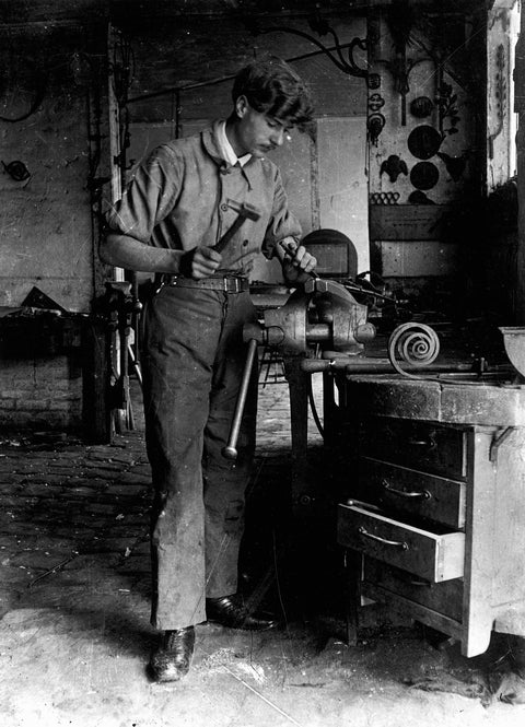 Prouvé trained as an artistic blacksmith, and his profound knowledge of metal remained the foundation of his work and career. He was aware of the limitations of ornament and wrought iron and wanted to join the modern movement, which is why he worked with steel and aluminum, folding and arc welding. In 1931, he founded the Atelier Jean Prouvé, where he began producing light metal furniture based on his own designs and collaborating with some of the most famous designers of his time, including Le Corbusier and Charlotte Perriand. Furniture production became a core part of his business.