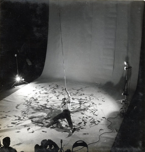 He began as a student of nihonga, traditional Japanese painting, yet quickly found its delicacy too constrained. What he wanted was friction, collision, and release. When the Gutai Art Association formed in 1954, a collective devoted to breaking art open through action and experimentation, Shiraga found his language. His body became his instrument, his movements the brush. Suspended by ropes, he hurled himself into his canvases, smearing pigment with his feet, collapsing the distance between creation and destruction.