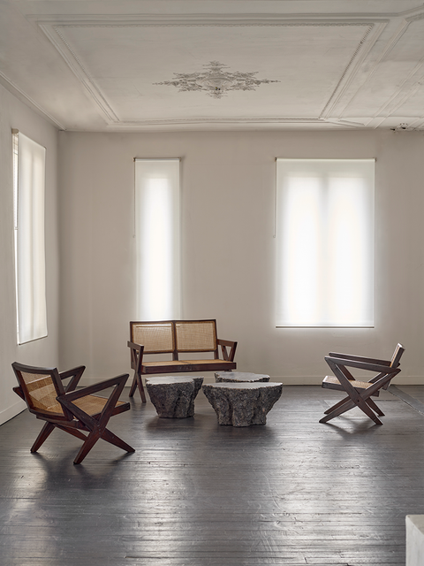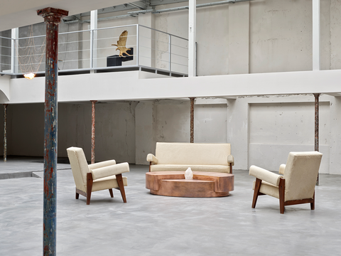 PIERRE DE VALCK, RICK OWENS, PIERRE JEANNERET AND NICLAS WOLFF, FOUR ARTISTS WHOSE WORKS GENERATE AS MANY VIEWS ON THE FRAGILE BALANCE OF RELATIONS BETWEEN HUMANITY AND ITS SURROUNDINGS. IN THE AGE OF THE ANTHROPOCENE, WHEN HOMININS SEEM TO HAVE LEFT THEIR INDELIBLE MARK ON THE EARTH, IT SEEMS APPROPRIATE TO ASK ONCE AGAIN: WHAT IS THE ARTIST'S RELATIONSHIP TO THE MATERIALS THAT SURROUND HIM, AND WHAT DOES HE PROJECT ONTO THEM?