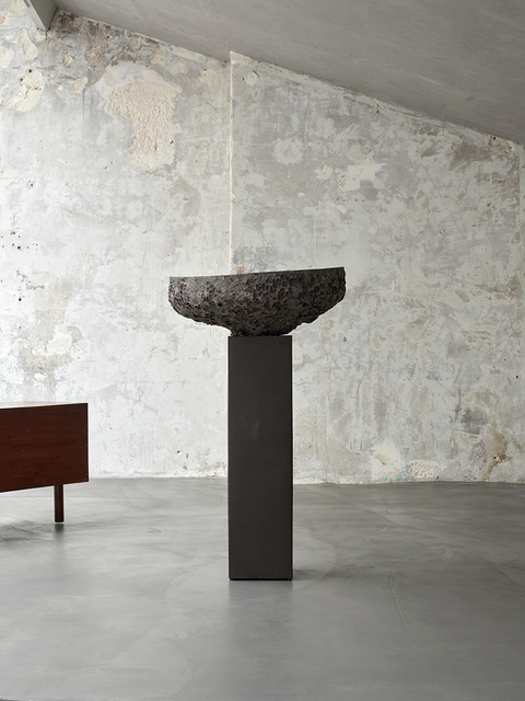 PIERRE DE VALCK IS DEVELOPING A BODY OF WORK IN WHICH ALUMINUM AND BRONZE SET STONE AS A PEDESTAL, HIGHLIGHTING AN ARCHAEOLOGICAL PIECE. THESE PIECES BEAR WITNESS TO AN UNQUENCHABLE CURIOSITY THAT MAGNIFIES THE SYMBIOSIS BETWEEN THE HAND OF MAN AND THE CREATIVE FORCES OF NATURE. THE PURITY OF PIERRE DE VALCK'S WORK IS REMINISCENT OF THAT OF PIERRE JEANNERET. BUT IF ONE IS THE MAN OF THE INSIDE, THE ONE WHO LOOKS AT HIMSELF TO, IT SEEMS, APPRECIATE THE HARMONY OF HIS GESTURE IN A LARGER NATURE, THE OTHER HAS PUT HIS CREATIVITY AT THE SERVICE OF THE TRANSFORMATIVE POWER OF MAN—HE IS THE MAN OF THE OUTSIDE, TURNED TOWARDS THE IMMEDIATE, PRACTICAL NEEDS OF HIS CONTEMPORARIES. THEY ARE TWO SIDES OF THE SAME COIN, BOTH AT THE CROSSROADS OF QUESTIONING IN THE FIELD OF DECORATIVE ARTS, OSCILLATING BETWEEN DREAM AND FUNCTION IN DESIGN.
