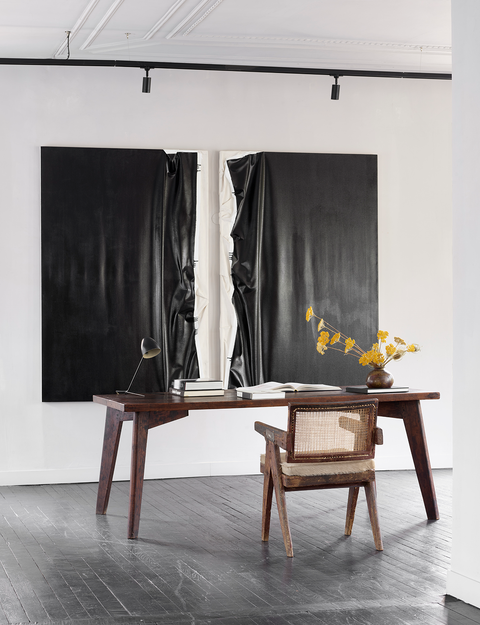IN COLLABORATION WITH HÉLÈNE NGUYEN-BAN, SCENERS GALLERY NOW HAS THE PRIVILEGE OF EXTENDING THE DIALOGUE BETWEEN THE DECORATIVE ARTS OF THE PAST AND TODAY'S VIEWERS INTO THE REALM OF PAINTING. STEVEN PARRINO, TAKESADA MATSUTANI, YVES KLEIN, EXPAND BEYOND THE BOUNDARIES OF THEIR ART, AS DO CARLO BUGATTI, REI KAWAKUBO, AND RICK OWENS. THEY BECOME ANCHORING POINTS WHILE OPENING NEW SPACES FOR EXPERIMENTATION. DESIGN, IL DISEGNO, THE LINE, PRESUPPOSES A VIEWER. ONE MUST DRAW TO BE SEEN, CREATE TO APPEAR, AND GIVE MEANING FOR IT TO UNFOLD TODAY.